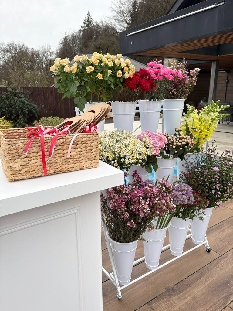 'Set Up and Go' – We'll handle the setup, leaving you to enjoy crafting your own bouquets at your leisure, and we'll return to collect everything after the event.